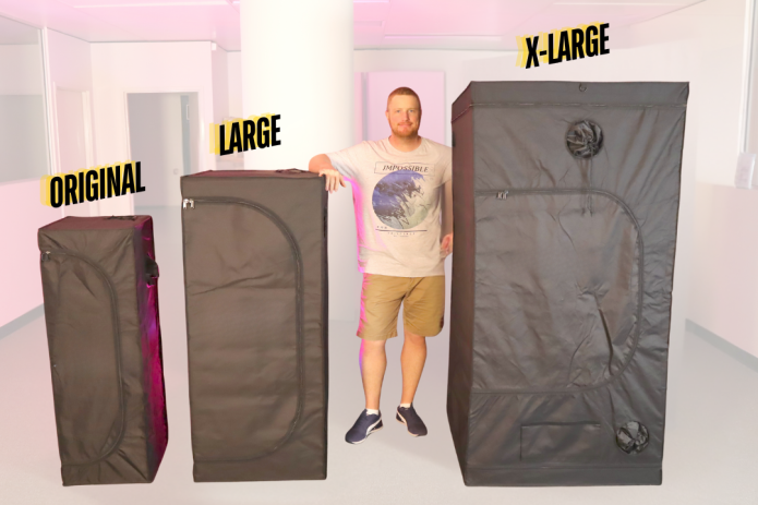 The Grow Tent is available in three sizes: Original, Large, and X-Large. We’ve calculated the approximate electricity costs for a complete grow cycle (3.5 months) so you can plan ahead: