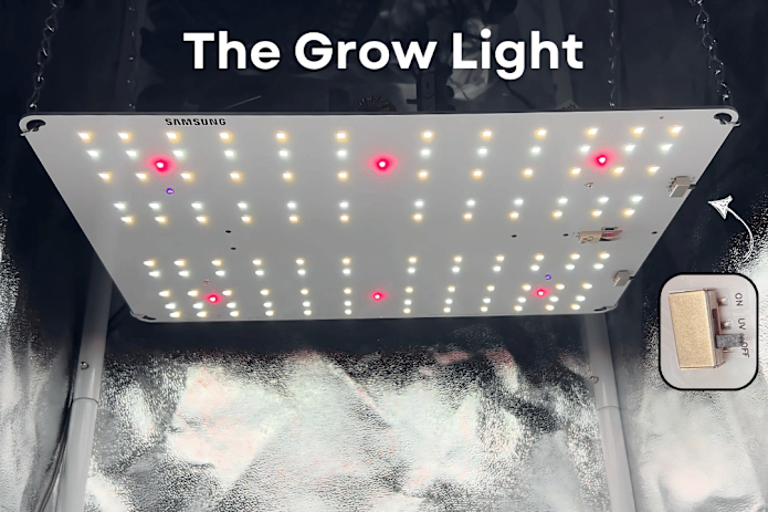 The Grow Tent includes an integrated LED grow light, powered by the latest Samsung LM301H EVO chips—a cutting-edge mix of 3000K and 6500K designed specifically for plant growth. These LEDs provide an optimal light spectrum, ensuring your plants thrive, and they run highly efficiently, producing plenty of light without wasting energy on heat.