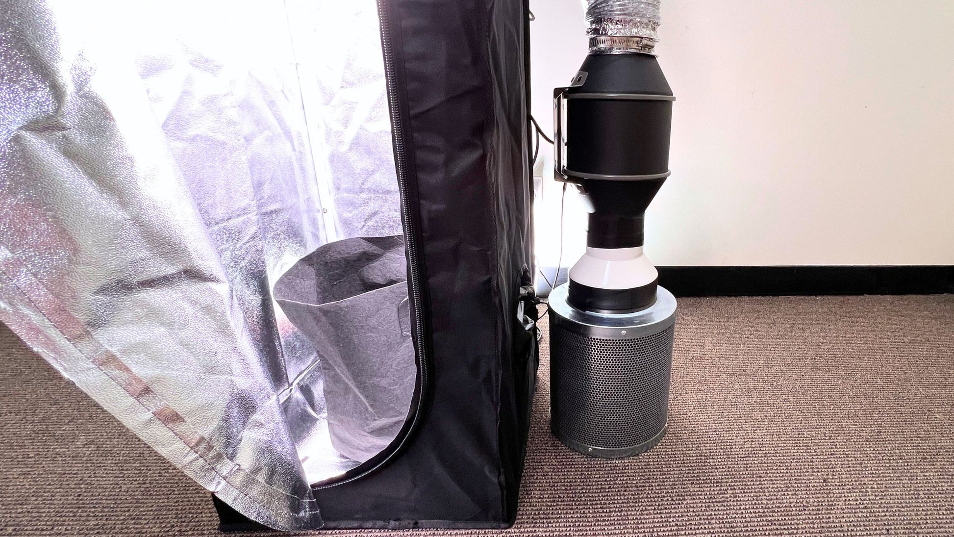 The Grow Tent operates quietly, with the only sound coming from the fans. Thanks to the speed-controlled fans, they run as slowly as possible, while only ramping up to as fast as necessary to maintain optimal conditions—keeping noise to a minimum.